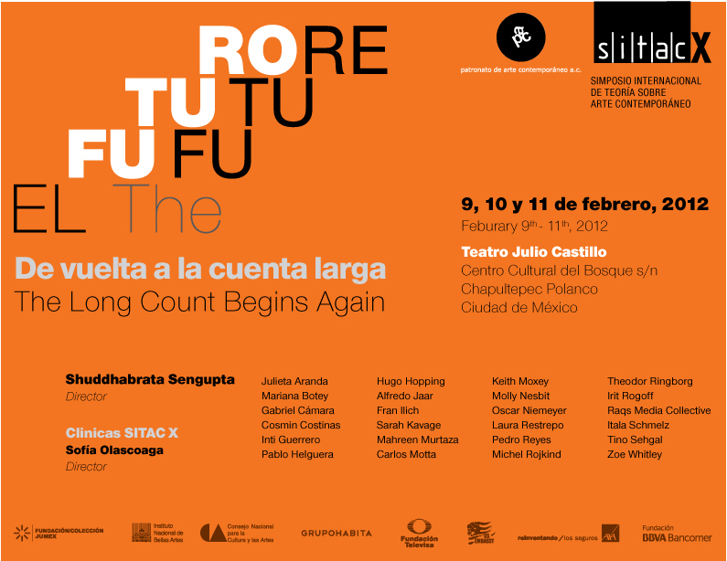 “Queremos tomar ventaja en esta concepción que nos rodea, sobre las nociones del calendario azteca, esta idea popular de que el fin del mundo es en el 2012. Básicamente es el fin de un calendario y el inicio de un nuevo conteo largo. Así que 2012 puede ser una ventana para los siguientes 3 mil años, pienso que esta puede ser una muy buena provocación para el mundo del arte contemporáneo, de ver el futuro de manera seria”, explicó Suddhabrata Seugupta, director del X SITAC en entrevista exclusiva con N22.