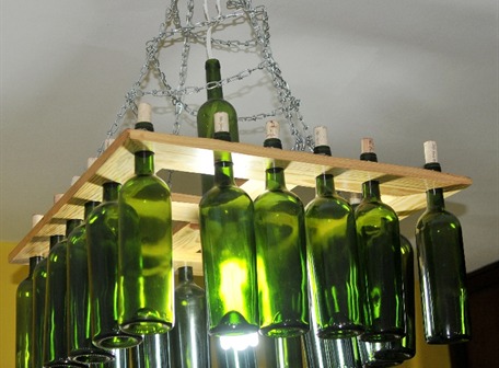 Conocer los objetos que ellas construyeron puede darte muchas ideas para poner vos mismo manos a la obra. En la foto que sigue podemos ver cómo Acaiturri-Villa y Fioravanti reutilizaron madera y simples botellas vacías, todas del mismo tamaño y color, para lograr una peculiar lámpara de techo, ideal para comedores u otros ambientes amplios.