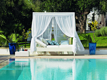 7 Si queremos contar en el exterior con cojines, camas balinesas, tumbonas con colchoneta, etc debemos emplear tela náutica. Algunas firmas como KA Internacional o Gancedo siempre lanzan colecciones de exterior que aguantan la humedad y la luz solar a la perfección.