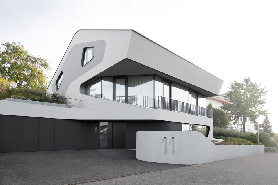 El estudio de arquitectura con sede en Berlin J. Mayer H. Architects concluyó una casa unifamiliar en Stuttgart, Alemania. La casa está situada en medio de un desarrollo residencial convencional de 1960, en una ladera con generosas vistas del valle vecino. Los breves requisitos del cliente especificaban que la vista hacia el valle debía integrarse en el interior de la casa.