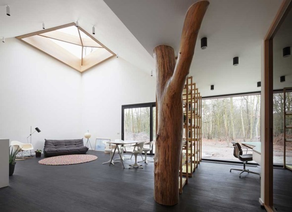 En una zona boscosa en el municipio de Keerbergen, la oficina LOW architecten diseña una vivienda en un solo nivel en cuyo interior alberga “árboles”.