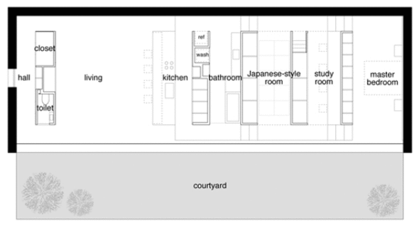 Shinichi Ogawa and Associates: Casa sin muros ni puertas interiores.