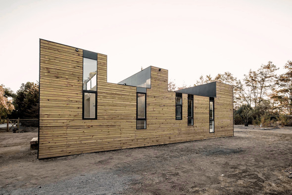 Casa de madera que juega con las alturas