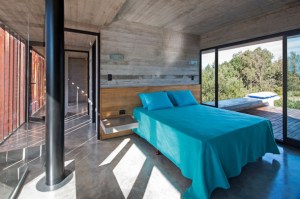 Casa de hormigón plegado y persianas de madera