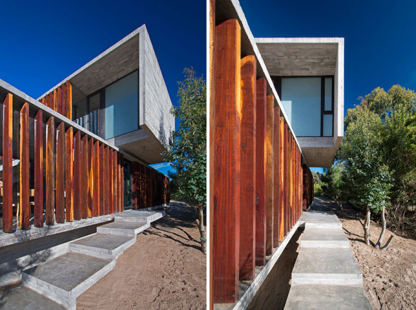Casa de hormigón plegado y persianas de madera